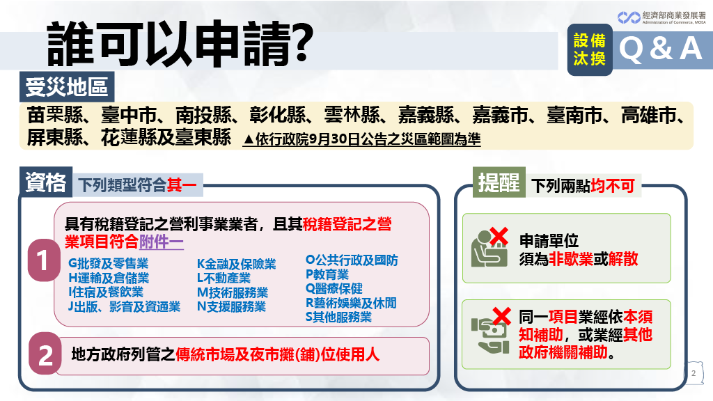 本補助依行政院公告含0923花蓮馬太鞍溪堰塞湖災害,有需求業者可參考須知及說明提出申請!